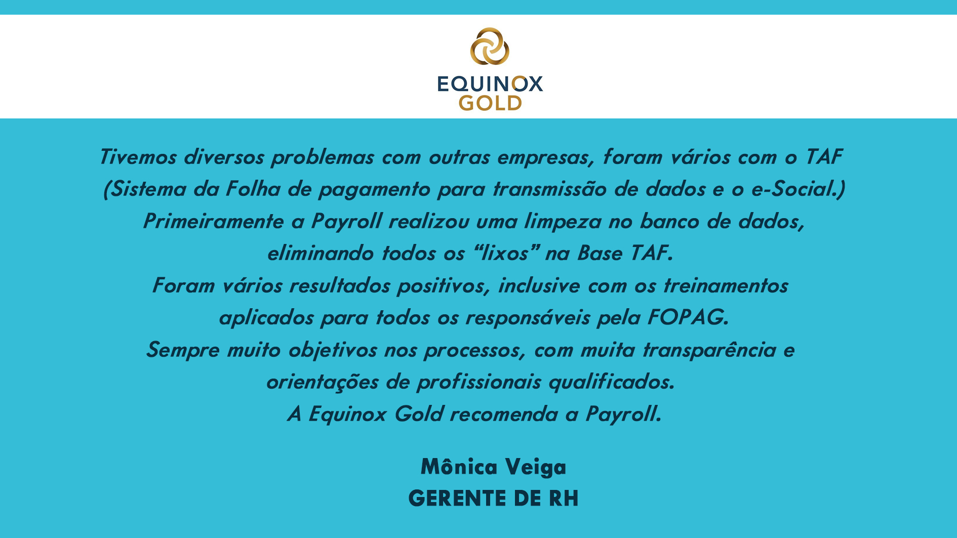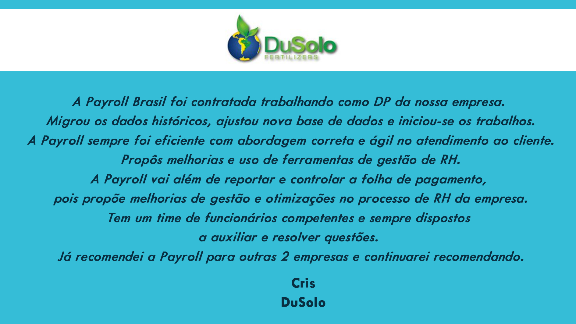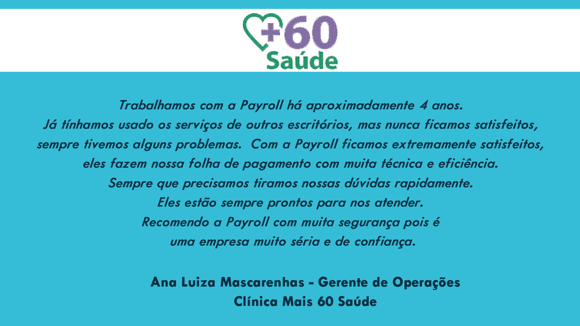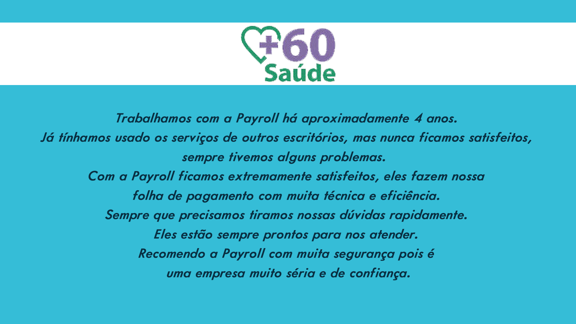 - Agilidade no processo, por possuir equipe altamente treinada nos 4 sistemas de folha;
